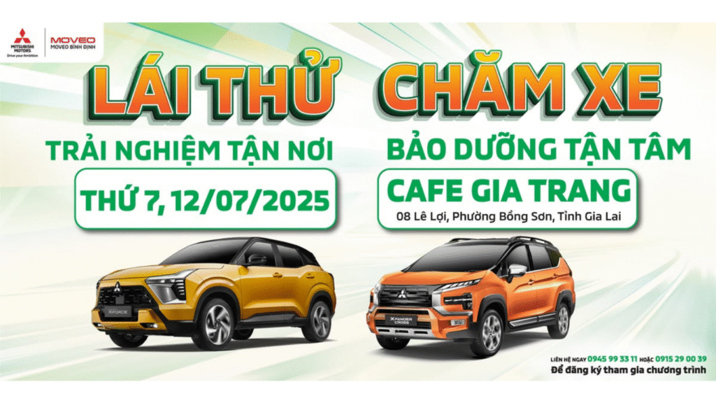 Gọi ngay 0964 88 22 58 hoặc inbox Fanpage Mitsubishi Bình Định để giữ chỗ tham gia lái thử & nhận ưu đãi bảo dưỡng độc quyền tại Hoài Nhơn.