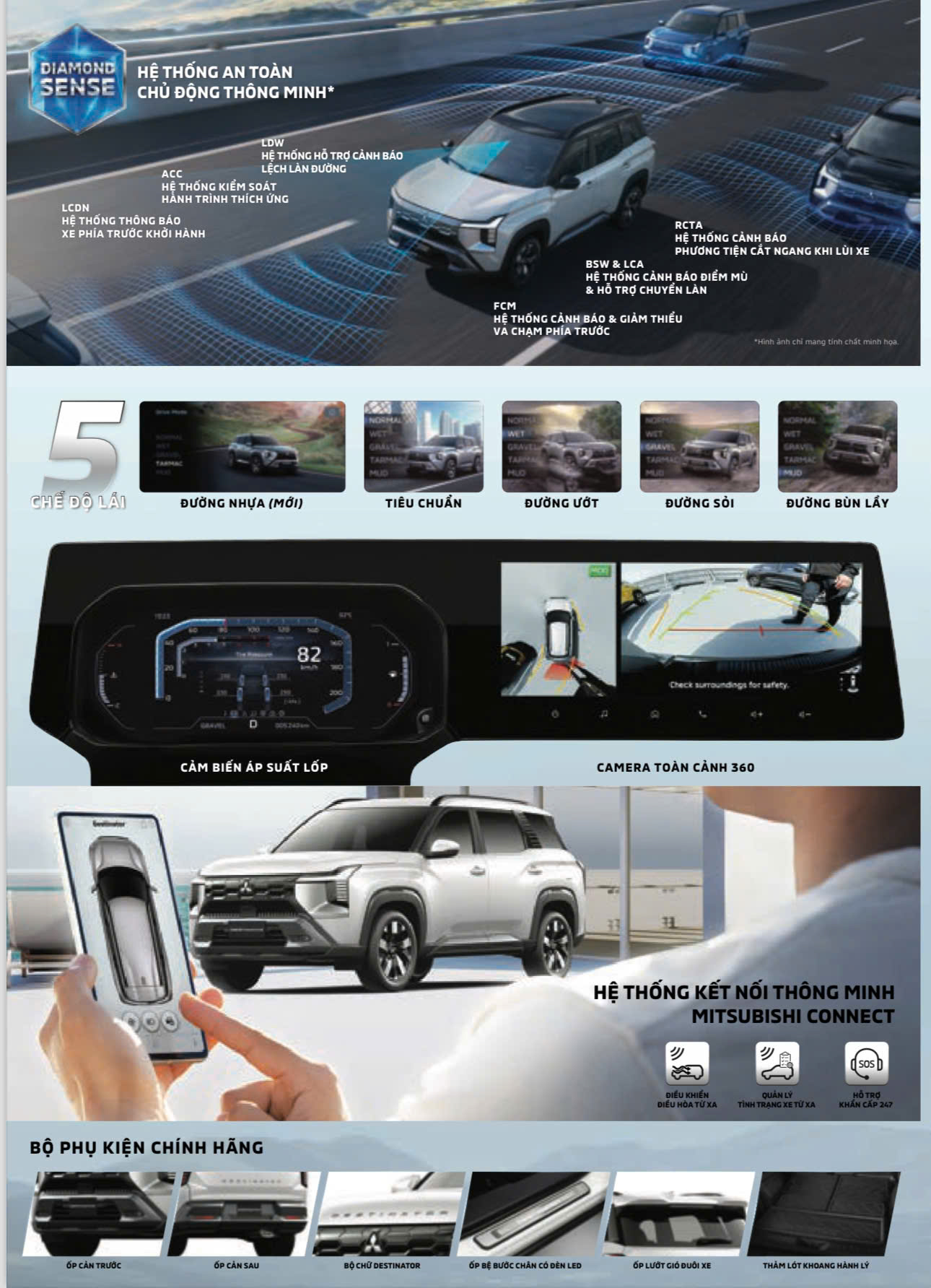 Mitsubishi Destinator được trang bị hệ thống Mitsubishi Safety Sensing (Diamond Sense) với nhiều tính năng tiên tiến: