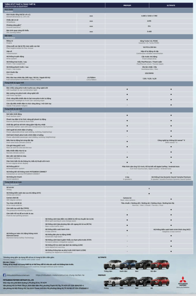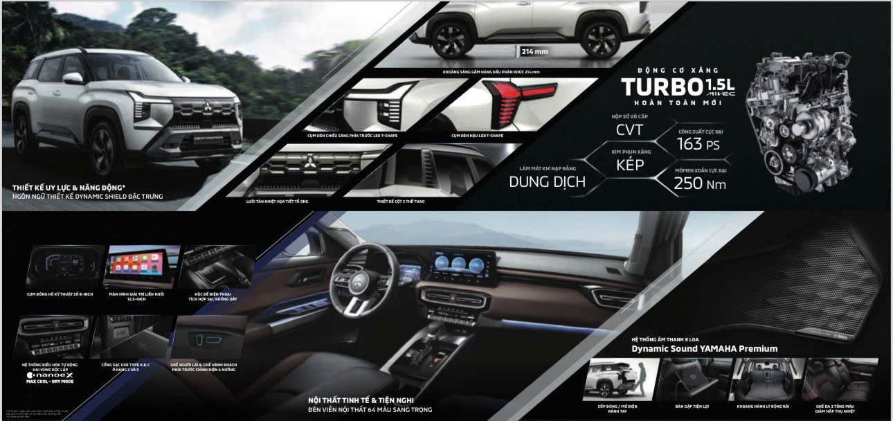 Động cơ 1.5L Turbo MIVEC, công suất 163 PS, mô-men xoắn 250 Nm.