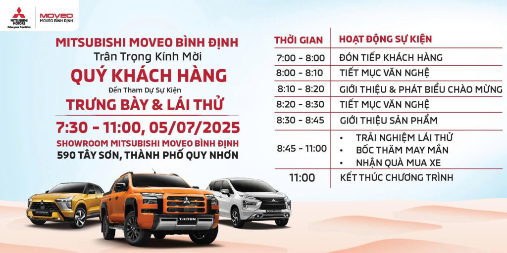 Địa điểm: Mitsubishi Bình Định – 590 Tây Sơn, TP. Quy Nhơn, tỉnh Bình Định